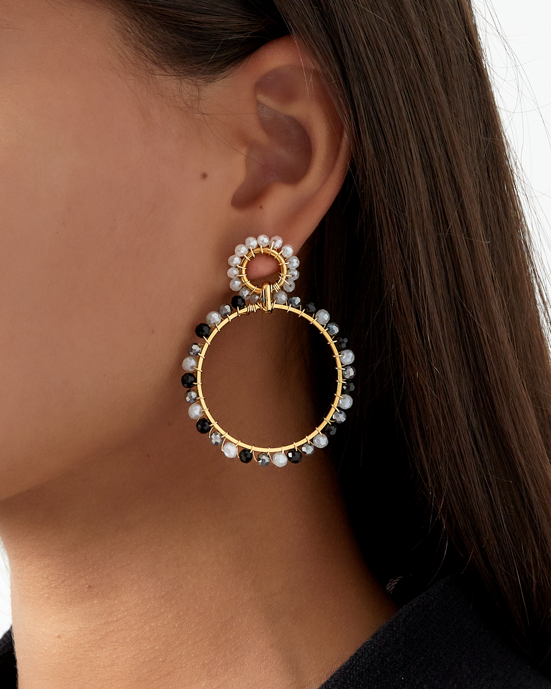 Αυτά τα σκουλαρίκια συνδυάζουν την κλασική γραμμή του κρίκου με τη ζωντάνια των χαντρών, δημιουργώντας ένα μοντέρνο και διακριτικό αποτέλεσμα. Οι χάντρες κρέμονται ελαφρώς γύρω από τον κρίκο, προσφέροντας κίνηση και λάμψη σε κάθε κίνηση. Ιδανικά για καθημερινές εμφανίσεις ή πιο casual βραδινές εξόδους, αυτά τα σκουλαρίκια είναι μια εύκολη επιλογή για να προσθέσεις χρώμα και φινέτσα στο στυλ σου.
