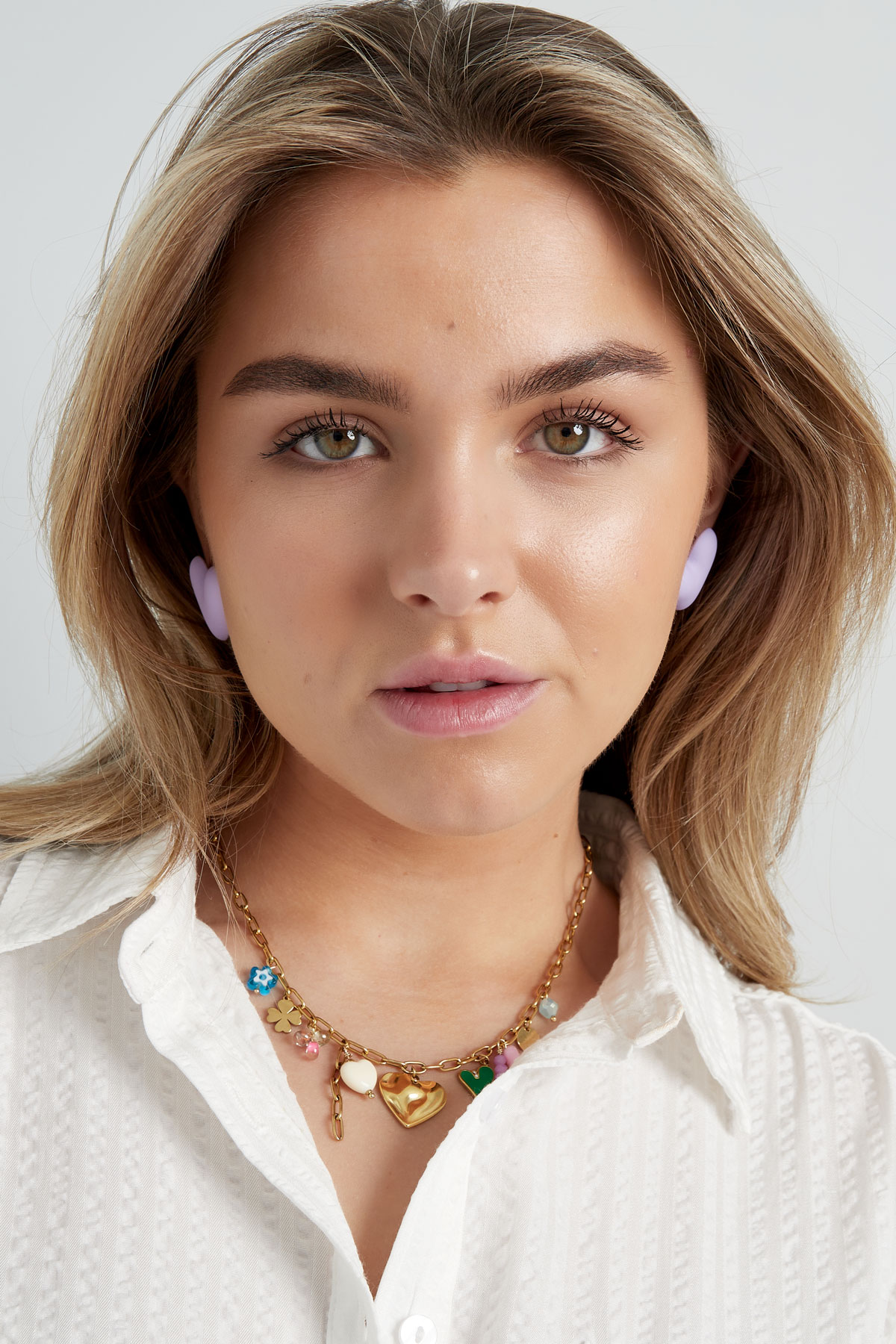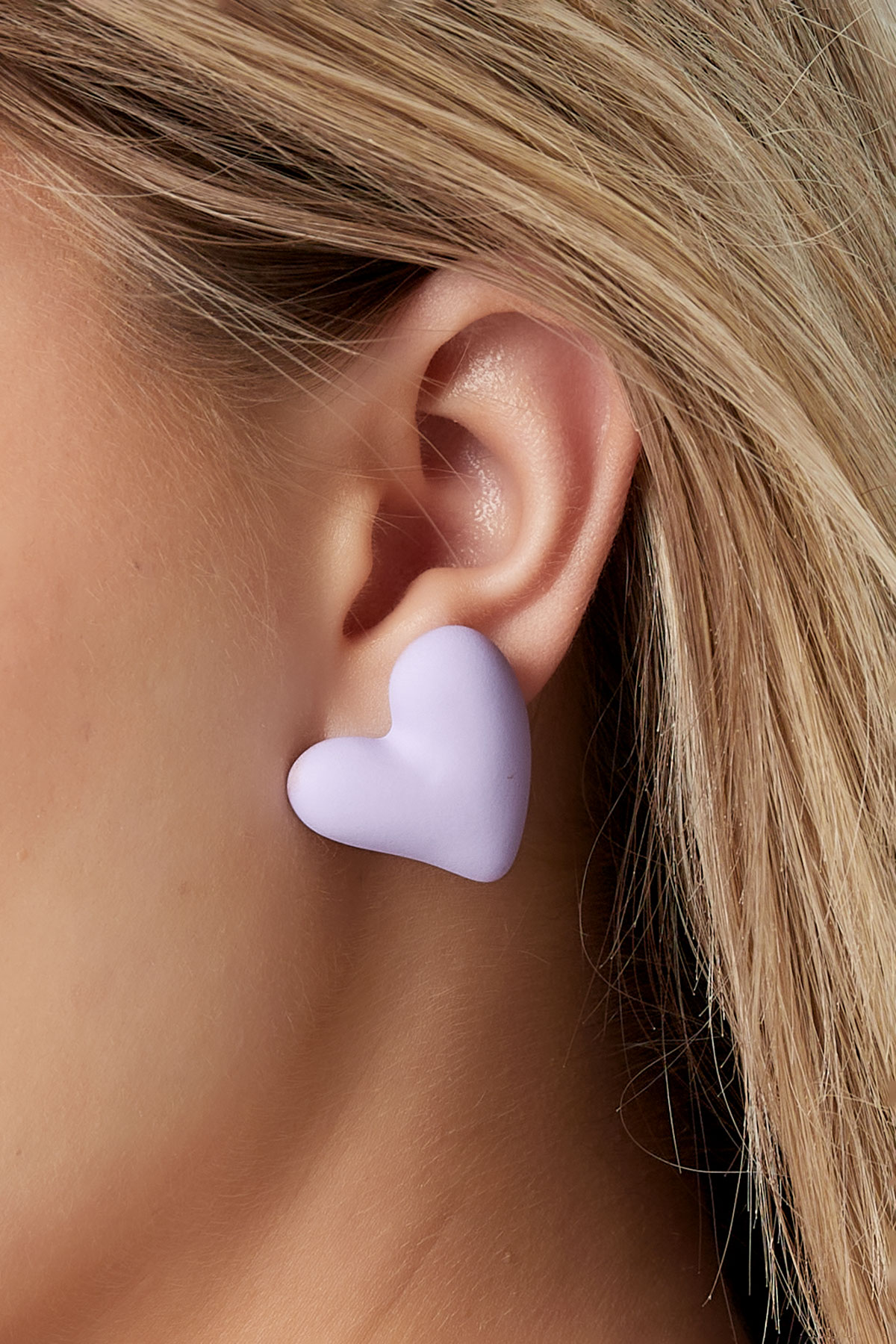 Σκουλαρίκια σε σχήμα καρδιάς με απαλό λιλά χρώμα, που προσθέτουν μια γλυκιά και μοντέρνα πινελιά σε κάθε εμφάνιση. Ιδανικά για καθημερινό στυλ ή ρομαντικές στιγμές!