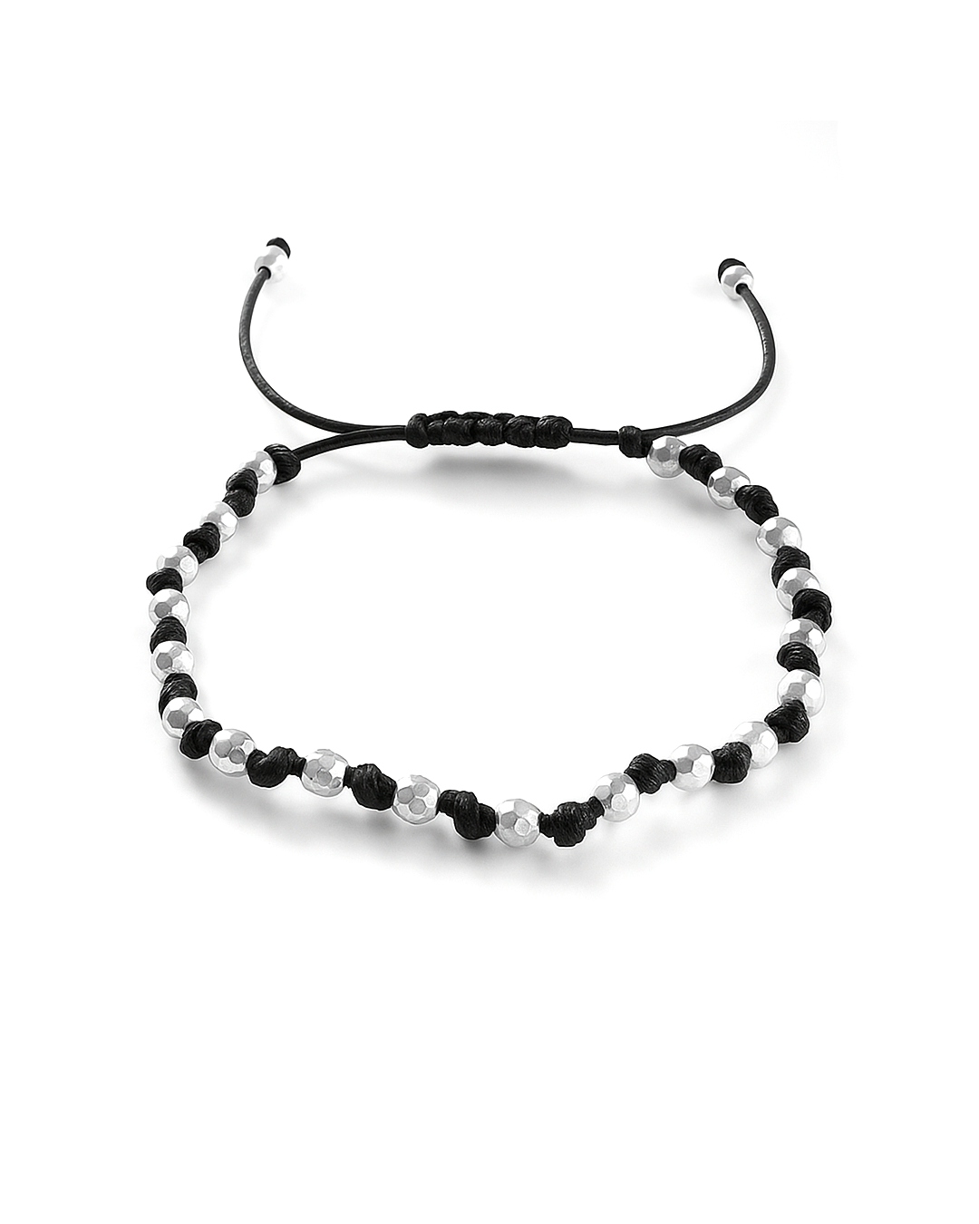 Κομψό χειροποίητο βραχιόλι με μαύρο κορδόνι και χάντρες από ζάμακ, ιδανικό για καθημερινή χρήση ή layering με άλλα βραχιόλια. Ρυθμιζόμενο μέγεθος για τέλεια εφαρμογή.